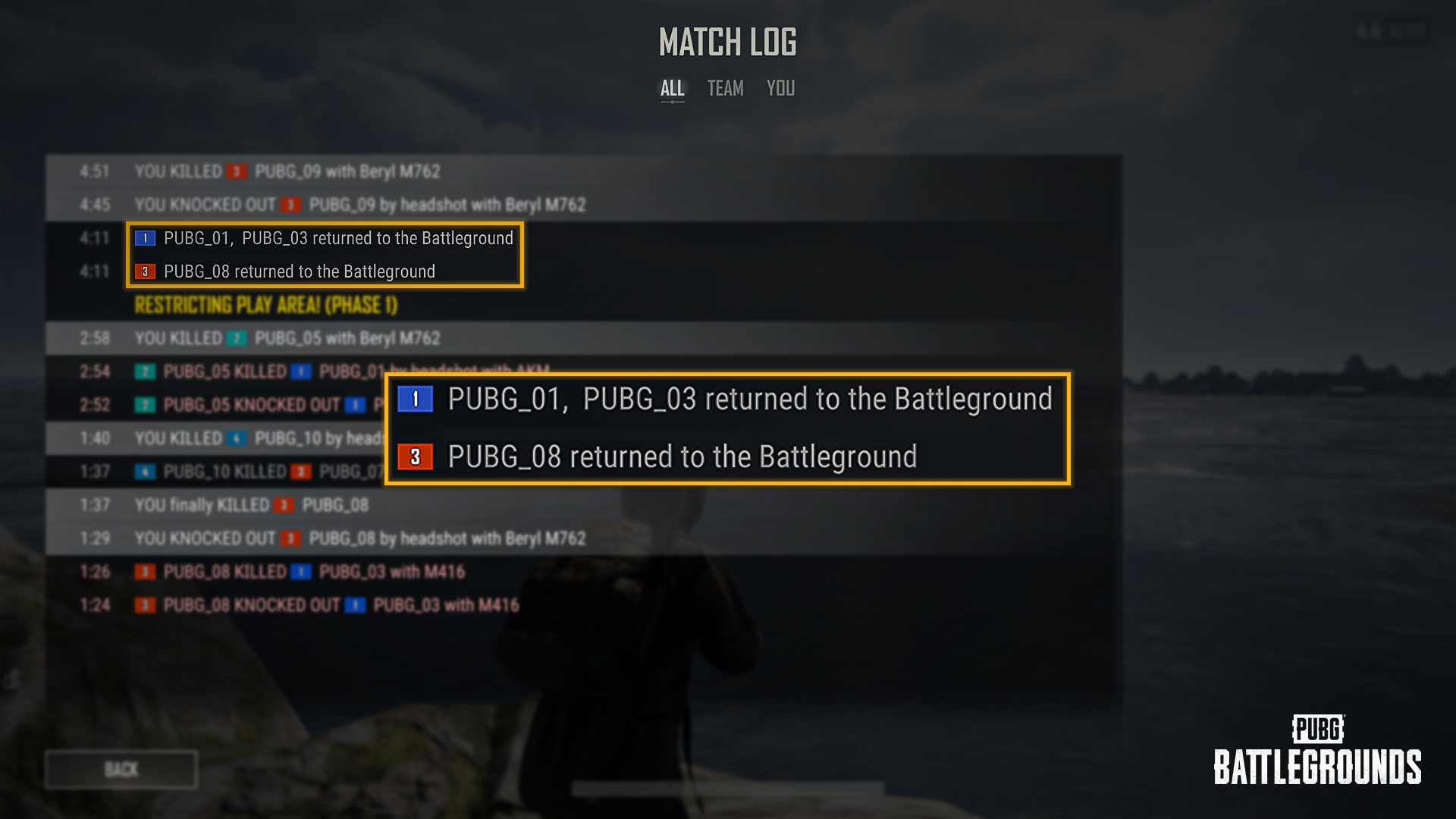 Information regarding players returning to the Battleground is now provided through system messages and the Match Log.